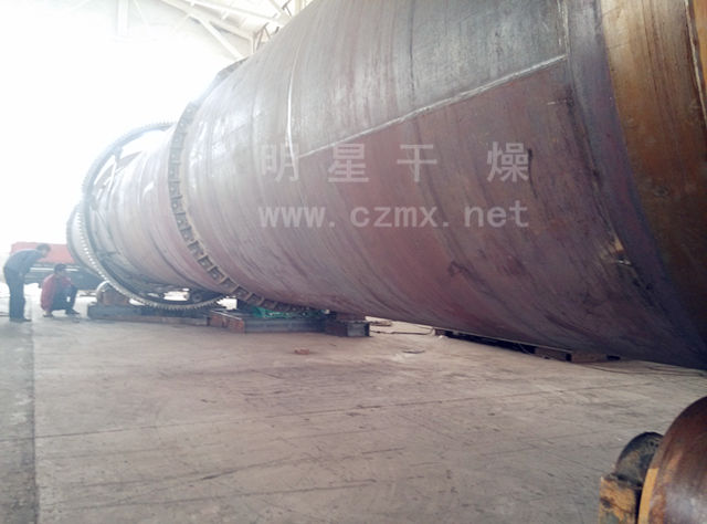 回轉(zhuǎn)式烘干機(jī)主要由回轉(zhuǎn)體、擋料板、傳動裝置、支承裝置等部件組成。其工作原理:利用擺布合理,角度交替變更均布于筒體內(nèi)的揚料板,把含水物料拋灑在旋轉(zhuǎn)的筒體內(nèi),經(jīng)熱氣流把水份從物料中分泌出來,變成水蒸氣排放于大氣中而進(jìn)行干燥。