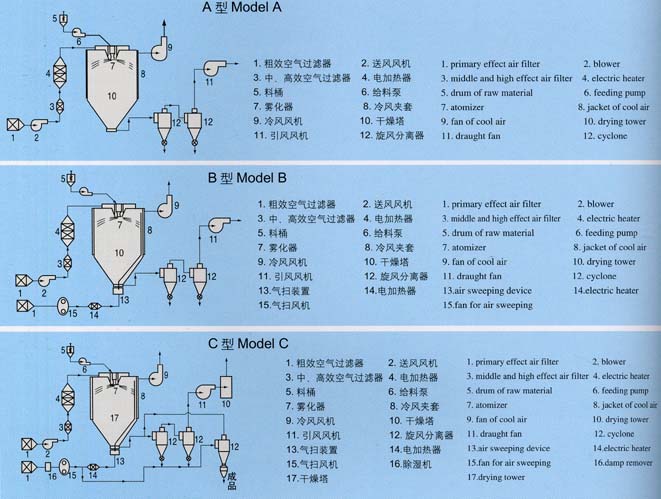 ▲干燥速度快,一般只需十幾秒鐘,具有瞬間干燥特點。 ▲干燥過程中液滴的溫度比較低,特別適用于熱敏性物料干燥,能夠保持產品品質。 ▲為防止干燥塔產生粘壁現象,本裝置設有夾層套冷卻結構,有效地杜絕產品的粘壁、焦化現象。提高產品質量、收率。 ▲特有的成品風送系統將干燥成品與系統內的熱濕空氣及時分離,避免了干燥成品的吸濕或結塊的可能性。 ▲進入干燥系統的風均經過濾處理,與物料接觸部位采用不銹鋼制作,符合GMP要求。 |