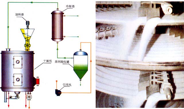 濕物料自加料器連續(xù)地加到干燥器上部第一層干燥盤(pán)上,帶有耙葉的耙臂作回轉(zhuǎn)運(yùn)動(dòng)使耙葉連續(xù)地翻抄物料。物料沿指數(shù)螺旋線渡過(guò)干燥盤(pán)表面,在小干燥盤(pán)上的物料被移送到外緣,并在外緣落到下方的大干燥盤(pán)外緣,在大干燥塔上物料向里移動(dòng)并從中間落料口落入下一層小干燥盤(pán)中。大小干燥盤(pán)上下交替排列,物料得以連續(xù)地流過(guò)整個(gè)干燥器。中空的干燥盤(pán)內(nèi)通入加熱介質(zhì),加熱介質(zhì)形式有飽和蒸汽、熱水和導(dǎo)熱油,加熱介質(zhì)由干燥盤(pán)的一端進(jìn)入,從另一端導(dǎo)出。已干物料從最后一層干燥盤(pán)落到殼體的底層,最后被耙葉移送到出料口排出。濕份從物料中逸出。由設(shè)在頂蓋上的排濕口排出,真空型盤(pán)式干燥器的濕氣由設(shè)在頂蓋上的真空泵抽出。從底層排出的干物料可直接包裝。通過(guò)配加翅片加熱器、溶劑回收冷凝器、袋式除塵器、干料返混木結(jié)構(gòu)、引風(fēng)機(jī)等輔機(jī),可提高其干燥的生產(chǎn)能力,干燥膏糊狀和熱敏性物料,可方便地回收溶劑,并能進(jìn)行熱解和反應(yīng)操作。 (一)調(diào)控容易、適用性強(qiáng) 通過(guò)調(diào)整料層厚度、主軸轉(zhuǎn)速、耙臂數(shù)量、耙葉型蕘尺寸可使干燥過(guò)程達(dá)到最佳。 每層干燥盤(pán)皆可單獨(dú)通入熱介質(zhì)或冷介質(zhì),對(duì)物料進(jìn)行加熱或冷卻,物料溫度控制準(zhǔn)確、容易。 物料的停留時(shí)間可以精確調(diào)整。 物料流向單一、無(wú)返混現(xiàn)象,干燥均勻,質(zhì)量穩(wěn)定,不需要混合。 (二)操作簡(jiǎn)單、容易 干燥器的開(kāi)車、停車操作非常簡(jiǎn)單。 停止進(jìn)料后,傳送物料垢耙葉能很快地排空干燥器內(nèi)的物料。 通過(guò)特殊性的大規(guī)格檢視門(mén)的視鏡,可以對(duì)設(shè)備內(nèi)進(jìn)行很仔細(xì)的清洗和觀察。 (三)能耗低 料層很薄,主軸轉(zhuǎn)速低,物料供關(guān)這系統(tǒng)需要的功率小,電耗少。 以傳導(dǎo)熱進(jìn)行干燥,熱效率高,能量消耗低。 (四)操作環(huán)境好,可回收溶劑,粉塵排放符合要求 常壓型:由于設(shè)備內(nèi)氣流速度低,而且設(shè)備內(nèi)濕度頒布上高下低,粉塵很難浮到設(shè)備頂部,所以頂部排溫口排出的尾氣的尾氣中幾乎不含有粉塵。 密閉型:配備黨溶劑回收裝置,可方便地回收載濕氣體中的有機(jī)溶劑。溶劑回收裝置簡(jiǎn)單,回收率謝,對(duì)于易燃、易爆、有毒和易氧化的物料,可用氮?dú)庾鳛檩d濕氣體進(jìn)行半路循環(huán),使之安全操作。特別適用于易燃、易爆、有毒物料的干燥。 (五)安裝方便、占地面積小 干燥器整體出廠,整體運(yùn)輸,只需吊裝就位,安裝定位非常容易。 由于干燥盤(pán)層立式布置,立式安裝,既使干燥面積很大,占地面積也很小。 |